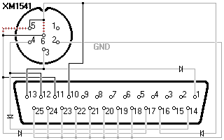 The original connections of the X1541 cable are shown in grey. Connections to cut off are shown with red stripes. You can find the description of all parts used on the diagrams at the legend page.