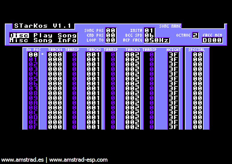 Comentarios  Soundtracker para crear música para el Amstrad CPC . Más información en http://starkos.cpcscene.com/
