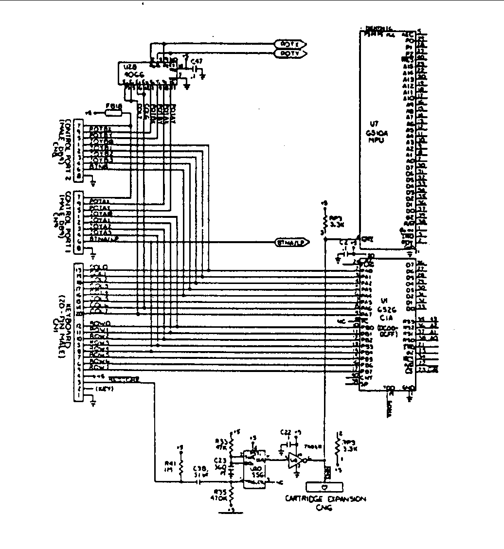 U1 also controls the joystick. Parallel port A accepts inputs from the B joystick connected to control